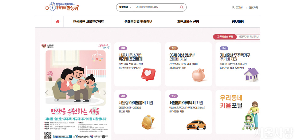 출산·육아 지원을 한곳에서 연결하는 몽땅정보 만능키는 임신·출산·육아 지원을 한곳에 모아 제공하는 통합 플랫폼이다. 난자 동결 시술비·서울형 아이돌봄비·자녀 출산 무주택 주거비 지원 등 주요 지원을 온라인으로 간편하게 신청할 수 있고, 자격 확인도 자동화되어 별도 서류 제출 부담이 적다. 서울엄마아빠택시 지원 같은 생활 지원까지 포함되며, 가구 유형·자녀 연령별 검색 기능으로 필요한 정보를 빠르게 찾을 수 있다.