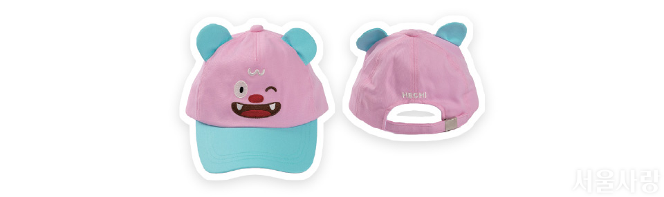 해치의 귀여운 표정이 담긴 아동용 볼 캡은 사랑스러운 베이비 핑크 컬러가 얼굴을 환하게 밝혀준다.